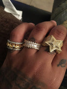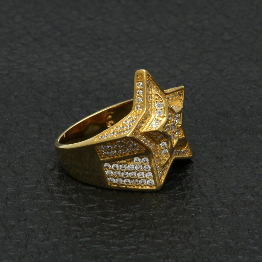 El anillo de estrella de diamantes está hecho con baño de oro de alta calidad y la cara del anillo está cubierta con hermosos diamantes CZ para un brillo adicional.