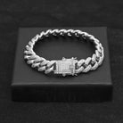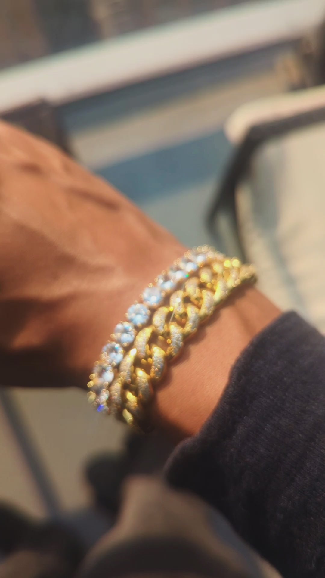 • Pulsera de eslabones cubanos de diamantes chapada en oro de 18 quilates de 12 mm