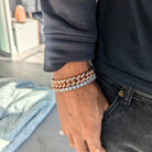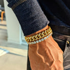 Juego de pulseras de tenis con eslabones cubanos y diamantes en oro de 18 quilates (2 piezas)