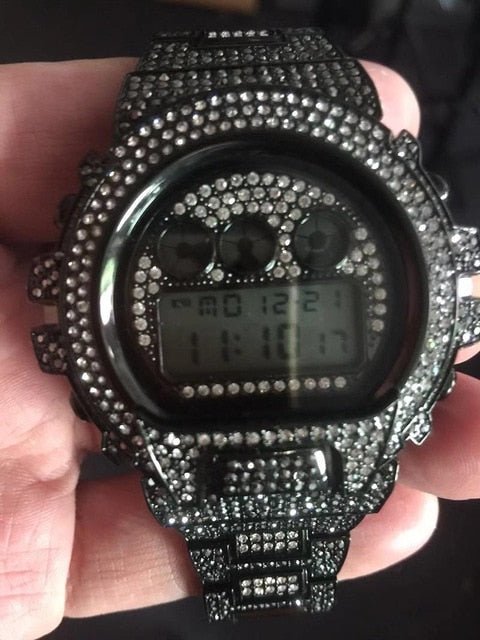El reloj digital G de oro de 18 quilates con diamantes está fabricado con un baño de oro de 18 quilates de alta calidad, bañado en 5 capas para un brillo duradero. Está bañado en impresionantes diamantes de circonita cúbica.