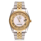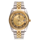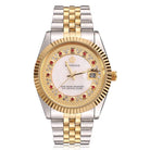 El reloj Crown está fabricado con acero inoxidable de alta calidad y acentuado con un lujoso baño de oro de 18 k y rematado con diamantes CZ colocados a mano para un brillo notable.