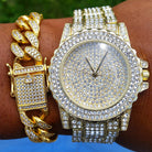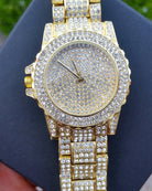 El reloj Frozen está hecho de un baño de oro de 18 quilates y luego está completamente cubierto por impresionantes diamantes CZ.