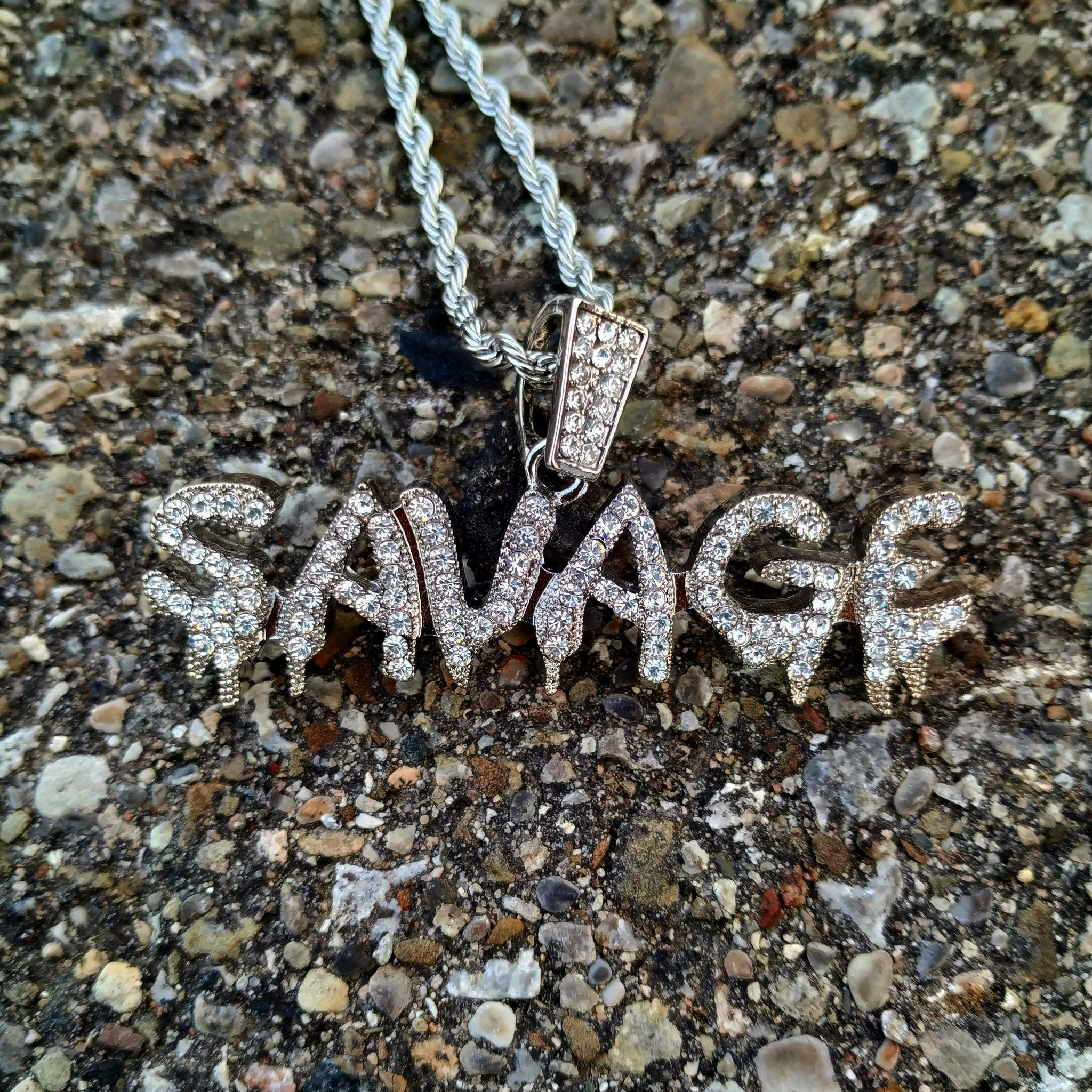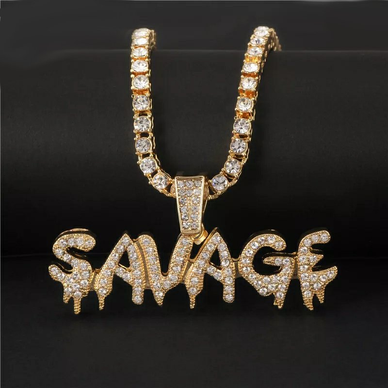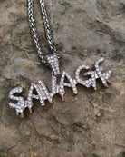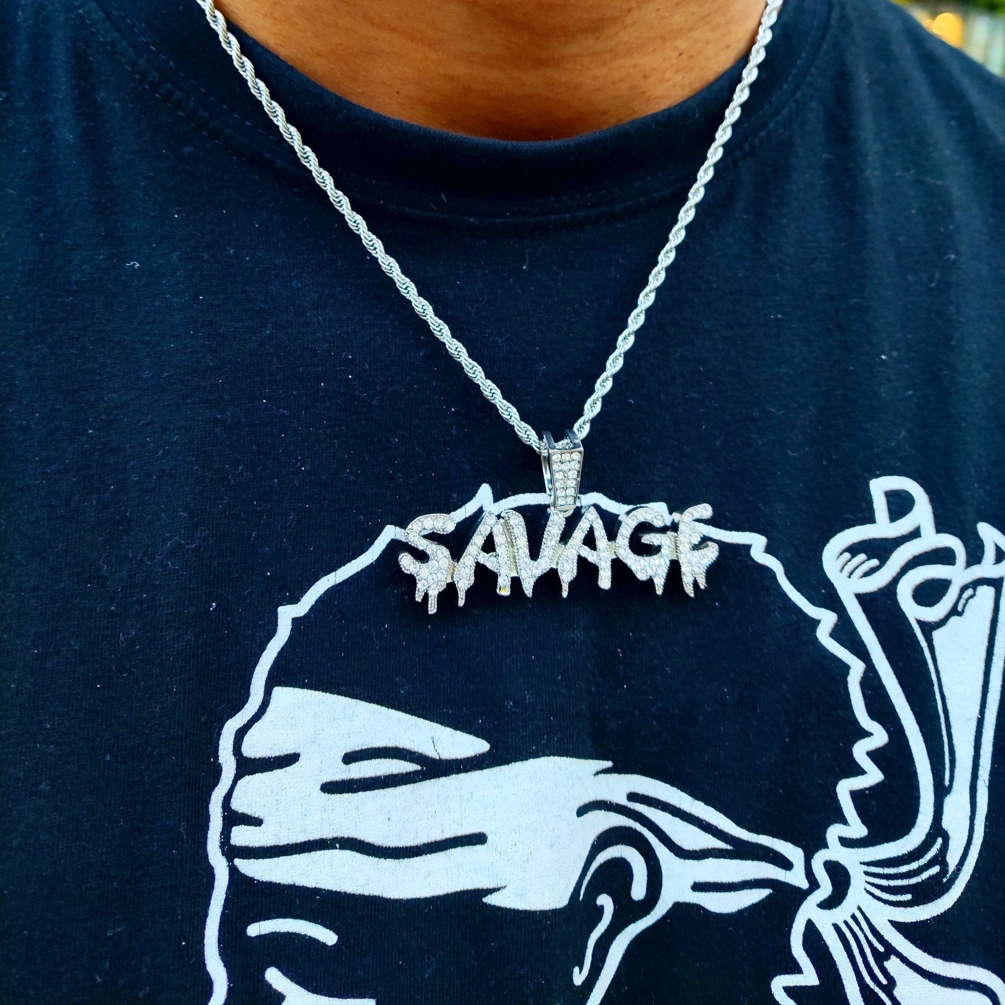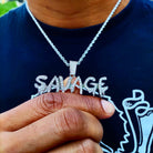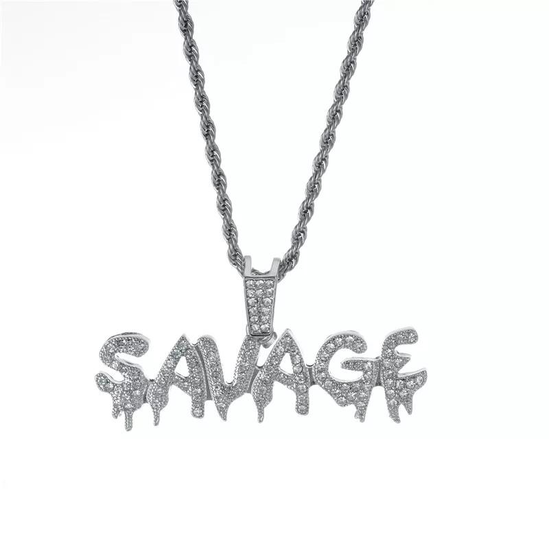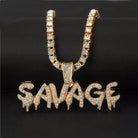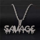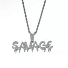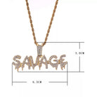 Le pendentif Savage en or 18 carats est réalisé en plaqué or 18 carats de haute qualité, trempé cinq fois pour un éclat durable. Il est ensuite incrusté de diamants en oxyde de zirconium.