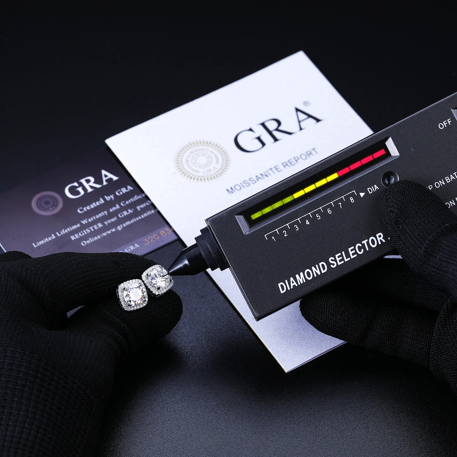 - Boucles d'oreilles en or 18 carats ou en argent 925 avec diamants taille coussin et moissanite