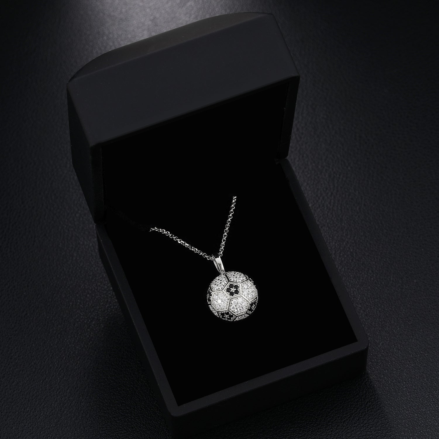 Célébrez votre passion pour le football avec ce pendentif ballon de football en or 18 carats ou en argent 925, serti de diamants et de moissanite. Un véritable chef-d'œuvre alliant luxe, esprit sportif et style. Que vous soyez joueur, supporter ou simplement amateur de bijoux inspirés du sport, ce collier pendentif football est conçu pour affirmer votre style.